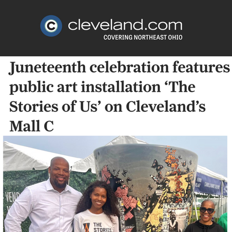The Stories of Us exhibition was simultaneously hosted outdoors in Cleveland's Mall C park and indoors at Tower City mall. Alongside incredible events for Cleveland's 2025 Juneteenth celebrations, we've had tremendous engagement from Clevelands community, marking the 10 new commissions from local artists. These exhibitions were made possible by our partners Bedrock and the City of Cleveland.
